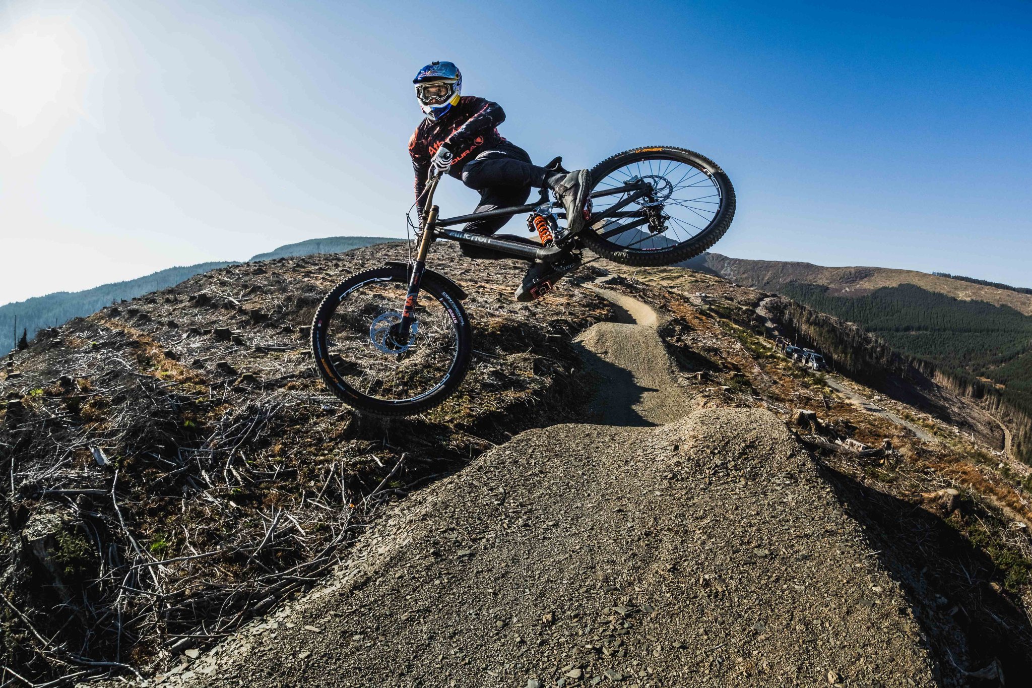 В Великобритании большинство основных трасс для скоростного спуска проходит в Шотландии или Уэльсе, поскольку эти страны более гористые. Форт-Уильям в Шотландии — единственная в Великобритании стандартная трасса чемпионата мира по футболу и место проведения чемпионата мира 2007 года. Основная серия в Великобритании — это Halo BDS (British Downhill Series), организованная Си Патоном (Descent-Gear.com) и Дэйвом Франсиози. Многие раунды Halo BDS проходят в Уэльсе, в том числе и в Лланголлене.Моэльфре в Среднем Уэльсе. В Шотландии они находятся в Гленко и Форт-Уильям. В Великобритании родились десятки успешных горных байкеров, включая Стива Пита, Джи Атертона, Марка Бомонта, Джоша Брайсленда и Брендана Фэйркло.