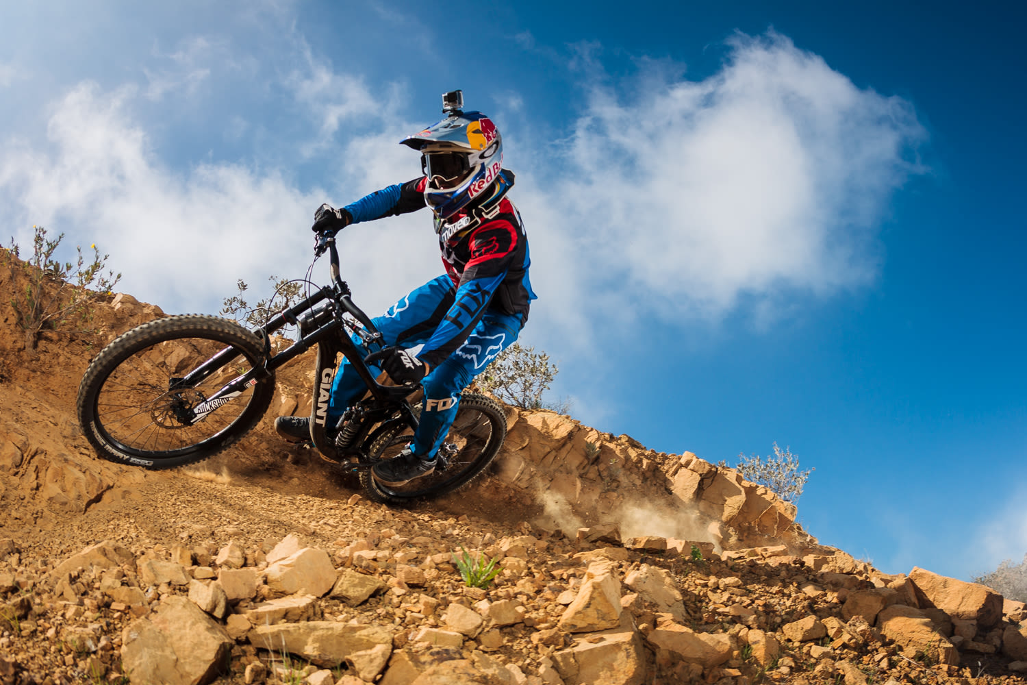 Но Ханнес вырвался вперёд и не сдался. В такие моменты очень удобно снимать двумя камерами – не тратя время на смену объектива, можно сперва снять телевиком прямую с трамплинами, потом широкоугольником контруклон перед тобой, а затем снова выцепить телевиком каменную секцию.