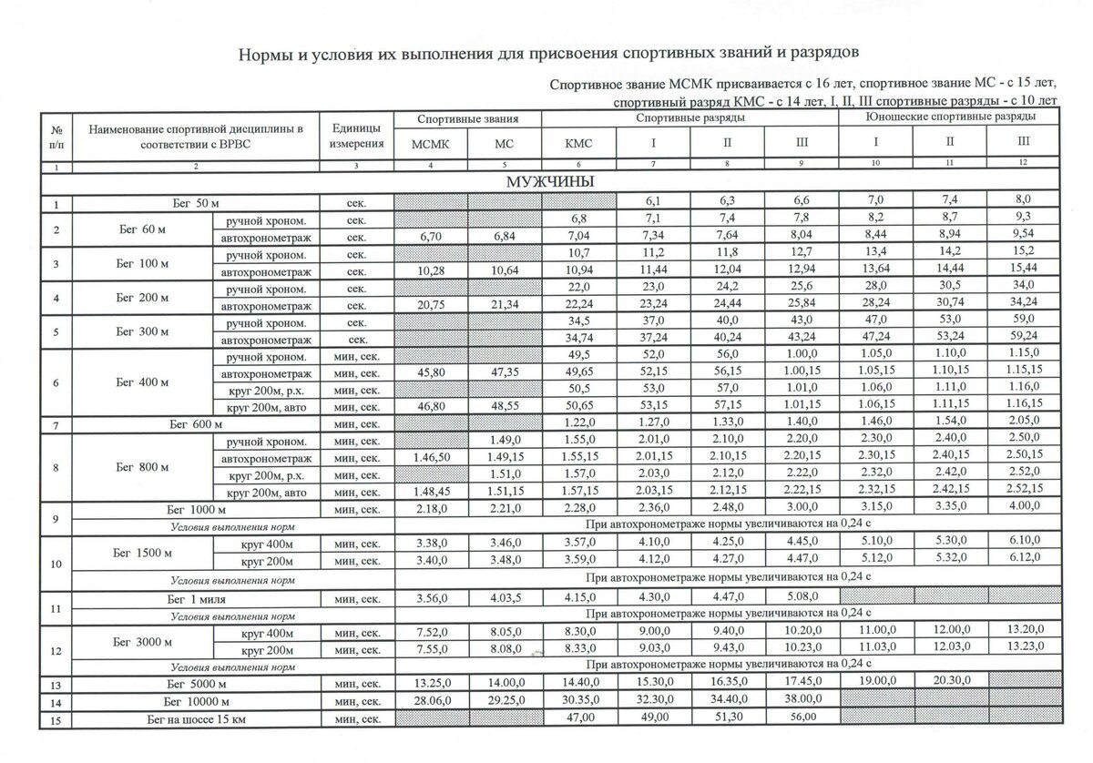 | 15 | Бег на шоссе 15 км | мин, сек. | 47,00 | 49,00 | 51,30 | 56,00 | ||||||